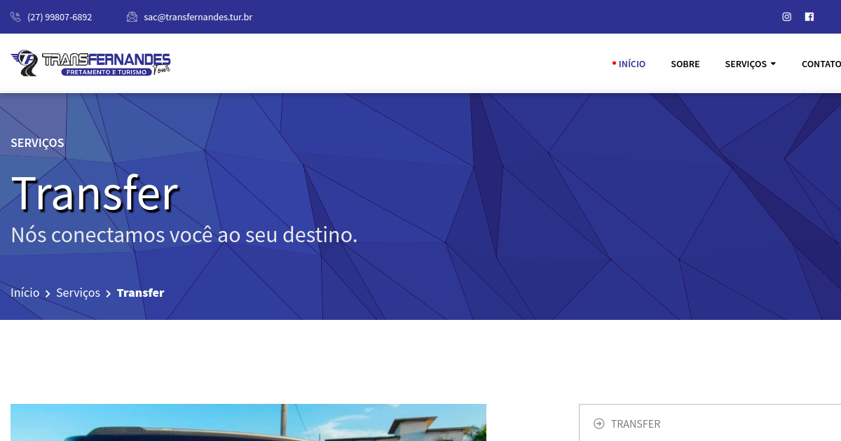 Contrate o serviço Transfer e garanta um deslocamento com agilidade e segurança! Você pode escolher seu veículo conforme a sua preferência: carro, van ou micro-ônibus.